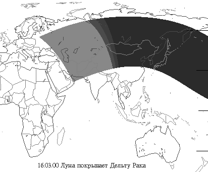 16 - Луна покрывает Дельту Рака (3.9m) - центр. и восточная части