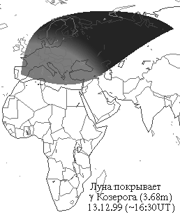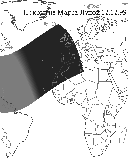 зап. Европе - покрытие Марса Луной 13 - Луна покрывает Гамму