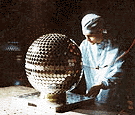 48 см и весом в 39 кг., облепленый почти тысячей (~900) маленьких зеркал