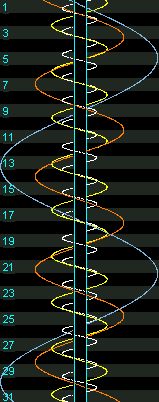 Двойная голубая линия в центре рисунков показывает размер диска Юпитера (в бинокуляр).