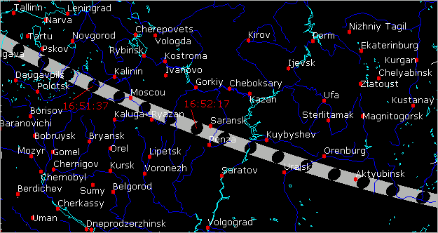 Корнелия (Cornelia) произойдет вечером 3 апреля 2000 года. Тень астероида