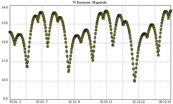 С лунными затмениями тоже не очень хорошо: Первое лунное затмение 4 июня будет частным, с максимальной фазой всего-лишь 0.37. Понятно, что в летние месяцы полная Луна видна в южных (низких) частях эклиптики, так что даже в тех районах нашей страны, где можно будет увидеть его окончание (к востоку от Байкала), струение теплого воздуха от земной поверхности внесет свои коррективы. А впрочем, для видовых фотопейзажей частично затмившейся Луны на фоне лесных вершин или других объектов горизонта это только на пользу... ![]() По ходу затмения Луна пройдет через северную часть земной тени. Начало вступления Луны в тень от Земли - 09ч58м по всемирному времени (Гринвич), а ее выход из тени - 12ч08м UT. Как можно понять - чем восточнее наблюдатель - тем темнее у него небо и лучше условия для наблюдений. Все фазы затмения от начала и до конца будут видны только из областей Тихого океана (между Д.Востоком и Америкой)... Второе лунное затмение произойдет 28 ноября и, к сожалению, будет лишь полутеневым (хотя и видимым практически из всей России, за исключением самых западных регионов). Во время затмения (с 12ч14м по 16ч53м UT) Луна пройдет сквозь южную часть земной полутени, поэтому максимум что произойдет - это небольшое потемнение северного края Луны вблизи середины затмения (~14ч30м UT). Порадовать может только одно - по ходу затмения наш природный спутник будет виден в созвездии Тельца (Гиады) в 4-5 градусах правее Юпитера... Зато нас ожидает очень редкое явление - прохождение Венеры по диску Солнца 5/6 июня!!! Причем, как и в 2004 году, явление доступно для наблюдений из большей части России (за исключением самых западных регионов - специальная страничка по ссылке выше) Главные планеты: Эфемериды всех главных планет солнечной системы доступны со специальной странички. Начало года будет отмечено хорошей вечерней видимостью Венеры, которая 10 февраля пройдет в 18' к северу от Урана, 13 марта в 2.9° севернее Юпитера! и 3 апреля окажется в Плеядах, имея блеск -4.4 звездной величины и элонгацию от Солнца в 46 градусов! Так что у вас есть все шансы получить интересные фото этих явлений. Не менее интересным обещает стать утро 3 октября, когда Венера пройдет всего в 7' к югу от Регула (альфа Льва). 4 марта нас ожидает очередное противостояние Марса (напомним, что они бывают не каждый год). Юпитер медленнно поднимается по эклиптике, перебираясь из Овна в Телец, и дважды посещая Гиады (в июле и в декабре). Чуть более скромен Сатурн, весь год движущийся по созвездию Девы, неподалеку от его главной звезды Спики. Уран расположился вблизи точки весеннего равноденствия, а более далекий Нептун продолжает свое медленное движение по созвездию Водолея. Покрытия: По части покрытий звезд и планет Луной, наступающий год будет гораздо лучше предыдущего. В предутренние часы 15 июля жители самых западных регионов и юга России смогут увидеть покрытие Луной Юпитера (Краснодар с 01:22 до 02:32UT, Сочи - с 01:20 до 02:31UT). В то время как у жителей восточных регионов (к востоку от Томска, Кемерова и Абакана) спустя месяц (утром 14 августа) есть шанс увидеть покрытие Венеры (например в Иркутске - 13 августа с 18:09 до 19:00 UT). Оба покрытия произойдут в северных частях эклиптики: Юпитер (-2.1m) будет виден в Тельце, а Венера (-4.3m) в Близнецах. В начале года на пути нашего природного спутника окажется Джубба (дельта Скорпиона 2.29m). Начнется серия покрытий