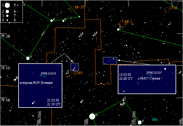 (7.5m) астероидом 39 Летиция (18:59 UT) - доступно наблюдениям в Крыму