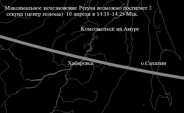 - 10 - Покрытие Регула астероидом 1990 SH28, доступное наблюдениям на Дальнем Востоке.