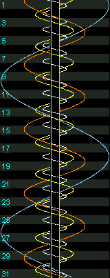 Двойная голубая линия в центре рисунков отображает размер видимого диска Юпитера.